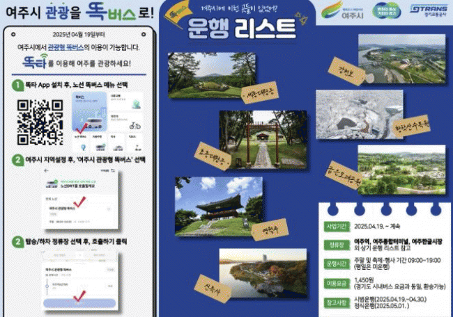 [NWS¹æ¼Û=Çѽ¸ñ ±âÀÚ]¿©Áֽô ¡®2025 ¿©ÁÖ °ü±¤ ¿ø³âÀÇ ÇØ¡¯¸¦ ¸ÂÀÌÇÏ¿© °æ±âµµ ¶È¹ö½º ÃÖÃÊ °ü±¤Çü ¶È¹ö½º¸¦ ¿À´Â 4¿ù 19ÀϺÎÅÍ ¸ÅÁÖ ÁÖ¸» ¹× °øÈÞÀÏ¿¡ ¿îÇàÀ» ½Ç½ÃÇÑ´Ù°í ¹àÇû´Ù. ¡®°ü±¤Çü ¶È¹ö½º¡¯´Â ¿©ÁÖ¿ª µî °ü³» ÁÖ¿ä ±³Åë°ÅÁ¡¡¦