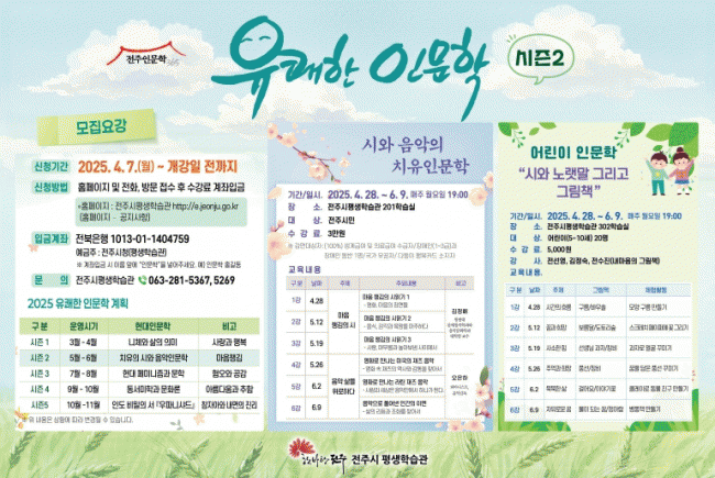 [NWS¹æ¼Û=Çѽ¸ñ ±âÀÚ]ÀüÁֽ𡠽ùεéÀÌ Àι®ÇÐÀ» ÅëÇØ ÇູÇÑ »îÀ» »ì ¼ö ÀÖ´Â ÁöÇý¸¦ ¹è¿ï ¼ö ÀÖ´Â Àι®±³À° °­Á¸¦ ¿î¿µÇÑ´Ù. ÀüÁÖ½ÃÆò»ýÇнÀ°üÀº ½Ã¹ÎµéÀÌ Àι®ÇÐÀ» »êÃ¥ÇÏµí ½±°Ô Á¢ÇÒ ¼ö ÀÖµµ·Ï ¿À´Â 22ÀϺÎÅÍ 6¿ù 10ÀϱîÁö ¸ÅÁÖ¡¦