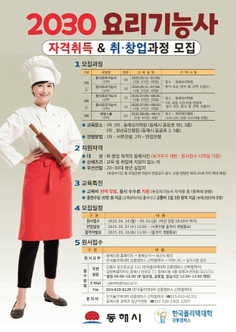 [»çȸ] µ¿ÇؽÃ, ¿ä¸®±â´É»ç ÀÚ°ÝÃëµæ ¹× Ã롤â¾÷°úÁ¤ ¿î¿µ |2025. 04.17