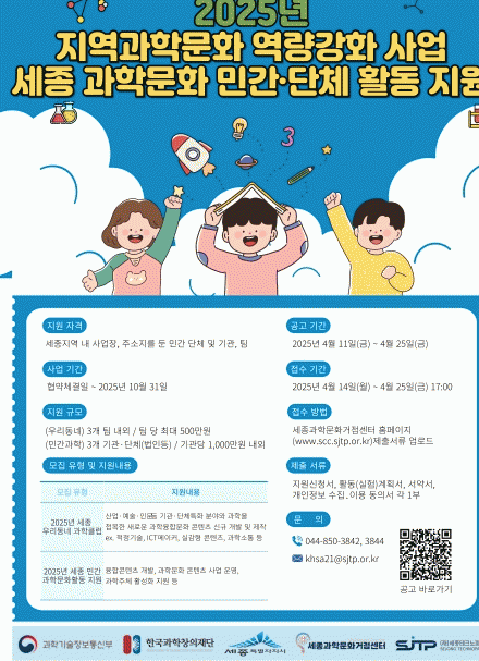 [»çȸ] ¼¼Á¾Å×Å©³ëÆÄÅ©, 2025 Áö¿ª°úÇй®È­ ÁÖü¹ß±¼¹× Ȱµ¿ Áö¿ø °ø¸ð |2025. 04.17