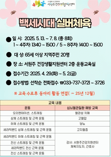 [»çȸ] ¼­¿øÁְǰ­»ýȰÁö¿ø¼¾ÅÍ, '¹é¼¼½Ã´ë ½Ç¹öüÀ°' Âü¿©ÀÚ ¸ðÁý |2025. 04.17