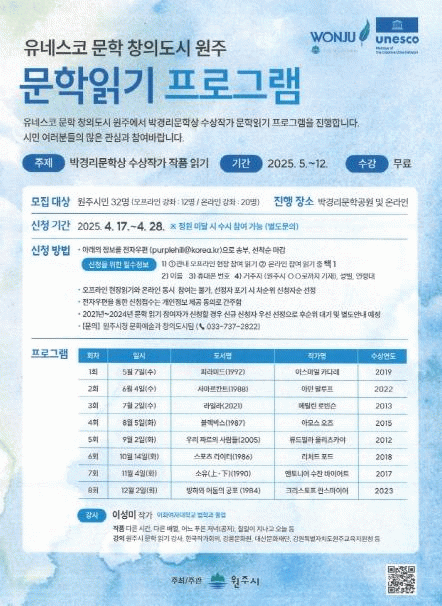 [»çȸ] À¯³×½ºÄÚ ¹®ÇРâÀǵµ½Ã ¿øÁÖ, ¹®ÇÐÀбâ ÇÁ·Î±×·¥ ÁøÇà |2025. 04.17