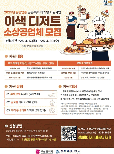 [°æÁ¦] ºÎ»ê½Ã, 'ÀÌ»ö µðÀúÆ®' ¾÷Á¾ ¸¶ÄÉÆÃ Áö¿ø¡¦ 30ÀϱîÁö Âü°¡ ¼Ò»ó°øÀÎ ¸ðÁý |2025. 04.17