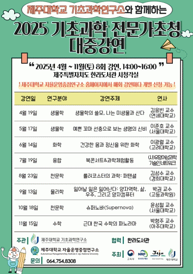 [NWS¹æ¼Û=Çѽ¸ñ ±âÀÚ]Á¦ÁÖÆ¯º°ÀÚÄ¡µµ ÇѶ󵵼­°üÀº Áö¿ª»çȸ ±âÃʰúÇÐ ¹®È­ È®»êÀ» À§ÇØ Á¦ÁÖ´ëÇб³ ±âÃʰúÇבּ¸¼Ò, ©ÅÁ¦ÁÖ°úÇй®È­Çùȸ µî°ú °ø°øºÐ¾ß ¿¬°è Ȱµ¿À» °­È­ÇØ Çù¾÷ »ç¾÷À» È®´ë ¿î¿µÇÑ´Ù. ±âÃʰúÇÐ ºÐ¾ß Àü¹®°¡ ÃÊû ´ëÁß¡¦