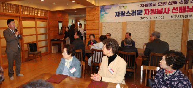[NWS¹æ¼Û=Çѽ¸ñ ±âÀÚ]ûÁÖ½ÃÀÚ¿øºÀ»ç¼¾ÅÍ´Â 16ÀÏ ÀÚ¿øºÀ»ç ¸ð¹ü ¼±¹è 40¸í°ú ÃÊû °£´ãȸ¸¦ °³ÃÖÇß´Ù. ÃÊ´ëµÈ ÀÚ¿øºÀ»ç ¸ð¹ü ¼±¹è´Â 10³â ÀÌ»óÀÇ ÀÚ¿øºÀ»ç °æ·ÂÀÚ·Î, ÃÖ±Ù 2³â°£ 100½Ã°£ ÀÌ»ó Ȱµ¿ÀÚ Áß °í·ÉÀÚ ¼øÀ¸·Î ¼±¹ßµÆ´Ù. À̳¯¡¦