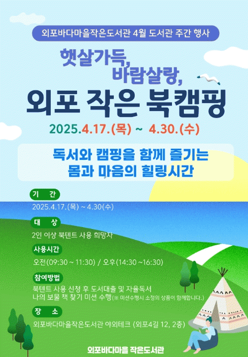 [Áö¿ªÁ¤Ä¡] ¿ÜÆ÷ ¹Ù´Ù¸¶À» ÀÛÀºµµ¼­°ü, °ÅÁ¦½Ã ¡®Ç޻찡µæ, ¹Ù¶÷»ì¶û ¿ÜÆ÷ ÀÛÀº ºÏÄ·ÇΡ¯ Çà»ç ¿î¿µ |2025. 04.16