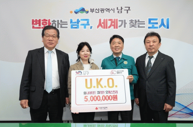 [NWS¹æ¼Û=Çѽ¸ñ ±âÀÚ]Áö³­ 15ÀÏ, À¯³ªÀÌÆ¼µå ÄÚ¸®¾È ¿ÀÄɽºÆ®¶ó¿¡¼­ ºÎ»ê ³²±¸¿¡ °ø¿¬¼öÀÍ±Ý 500¸¸¿øÀ» Àü´ÞÇß´Ù. À¯³ªÀÌÆ¼µå ÄÚ¸®¾È ¿ÀÄɽºÆ®¶ó´Â ¼Ò¾Æ¾Ï, ½ÉÀ庴 µîÀ¸·Î °íÅë¹Þ´Â ¾î¸°ÀÌ È¯ÀÚµéÀ» µ½ÀÚ´Â ÃëÁö¸¦ ¸ð¾Æ ºÎ»ê½Ã¸³±³Ç⡦