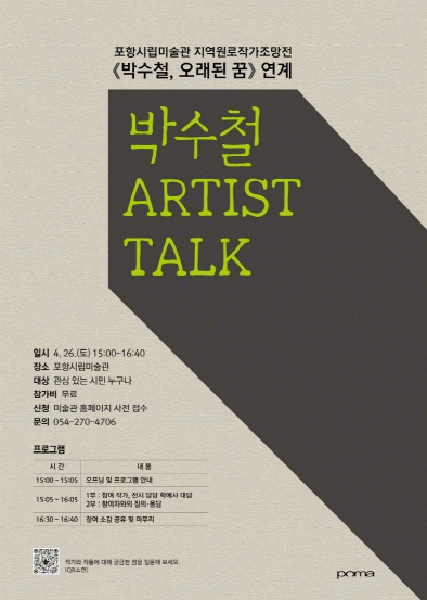 [NWS¹æ¼Û=Çѽ¸ñ ±âÀÚ]Æ÷Ç׽ø³¹Ì¼ú°üÀº Áö¿ª ¿ø·ÎÀÛ°¡ Á¶¸ÁÀü ¡®¹Ú¼öö, ¿À·¡µÈ ²Þ¡¯°ú ¿¬°èÇØ 26ÀÏ ¿ÀÈÄ 3½Ã ¹Ú¼öö ÀÛ°¡¿Í ÇÔ²²ÇÏ´Â ¡®POMA ¾ÆÆ¼½ºÆ® ÅäÅ©¡®¸¦ °³ÃÖÇÑ´Ù. À̹ø ÇÁ·Î±×·¥Àº ÀÛ°¡¿Í Á÷Á¢ ¸¸³ª ±×ÀÇ ¿¹¼ú ¼¼°è¸¦ ½ÉÃþÀûÀ¸¡¦