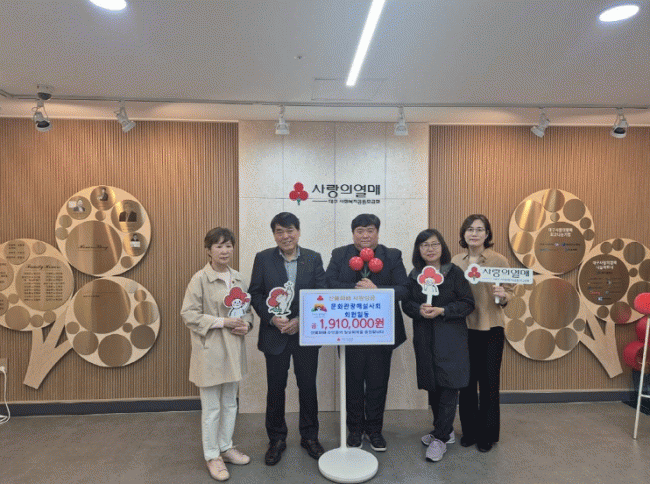 [NWS¹æ¼Û=Çѽ¸ñ ±âÀÚ]´ë±¸¹®È­°ü±¤Çؼ³»çȸ´Â 4¿ù 16ÀÏ ´ë±¸»çȸº¹Áö°øµ¿¸ð±Ýȸ¿¡ ÃÖ±Ù ¹ß»ýÇÑ ¿µ³²±Ç »êºÒÇÇÇØ º¹±¸¸¦ À§ÇÑ ÀÇ¿¬±Ý 191¸¸ ¿øÀ» Àü´ÞÇß´Ù. À̹ø ÀÇ¿¬±ÝÀº ´ë±¸¹®È­°ü±¤Çؼ³»çȸ ¹× °ü±¤Çùȸ ´ã´çÀÚ°¡ °æ»óºÏµµ ¹®È­°ü±¤¡¦