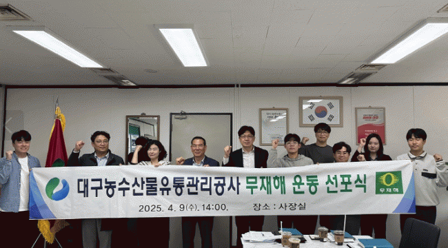 [NWS¹æ¼Û=Çѽ¸ñ ±âÀÚ] ´ë±¸³ó¼ö»ê¹°À¯Åë°ü¸®°ø»çÀº 4¿ù 9ÀÏ Áß´ëÀçÇØ»ç°í¸¦ ¿¹¹æÇϰíÀÚ ¹«ÀçÇØ ¿îµ¿ ¼±Æ÷½ÄÀ» ½Ç½ÃÇß´Ù. ¹«ÀçÇØ ¿îµ¿ ¼±Æ÷½ÄÀº °æ¿µÁøÀÇ ¾ÈÀüº¸°Ç°æ¿µ¿¡ ´ëÇÑ È®°íÇÑ ÀÇÁö¸¦ Ç¥¸íÇϰí ÀÚ¹ßÀûÀÎ ¹«ÀçÇØ ¿îµ¿ ÃßÁøÀ» ÅëÇØ¡¦