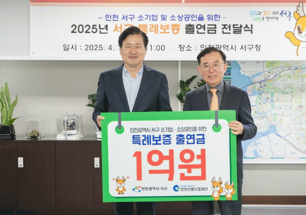 [NWS¹æ¼Û=Çѽ¸ñ ±âÀÚ]ÀÎõ±¤¿ª½Ã ¼­±¸´Â ÀڱݺÎÁ·À¸·Î °æ¿µ¿¡ ¾î·Á¿òÀ» °Þ°í ÀÖ´Â °ü³» ¼Ò±â¾÷°ú ¼Ò»ó°øÀÎÀ» À§ÇØ ÀÎõ½Å¿ëº¸ÁõÀç´Ü(ÀÌ»çÀå Àü¹«¼ö)¿¡ Ư·Êº¸Áõ Ã⿬±Ý 1¾ï ¿øÀ» Àü´ÞÇß´Ù°í 15ÀÏ ¹àÇû´Ù. ¼Ò±â¾÷¡¤¼Ò»ó°øÀΠƯ·Êº¸ÁõÀº¡¦