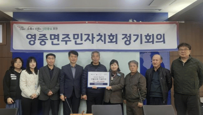 [NWS¹æ¼Û=Çѽ¸ñ ±âÀÚ]Æ÷õ½Ã ¿µÁ߸é ÁÖ¹ÎÀÚġȸ´Â ÃÖ±Ù ¿µ³² Áö¿ª¿¡¼­ ¹ß»ýÇÑ ´ëÇü »êºÒ·Î ÇÇÇØ¸¦ º» ÀÌÀç¹ÎµéÀ» µ½±â À§ÇØ ¼º±Ý 150¸¸ ¿øÀ» »çȸº¹Áö°øµ¿¸ð±Ýȸ¿¡ ±âŹÇß´Ù. À̹ø ¼º±ÝÀº ¿µÁ߸é ÁÖ¹ÎÀÚġȸ À§¿øµéÀÇ ÀÚ¹ßÀûÀÎ Âü¿©·Î ¡¦