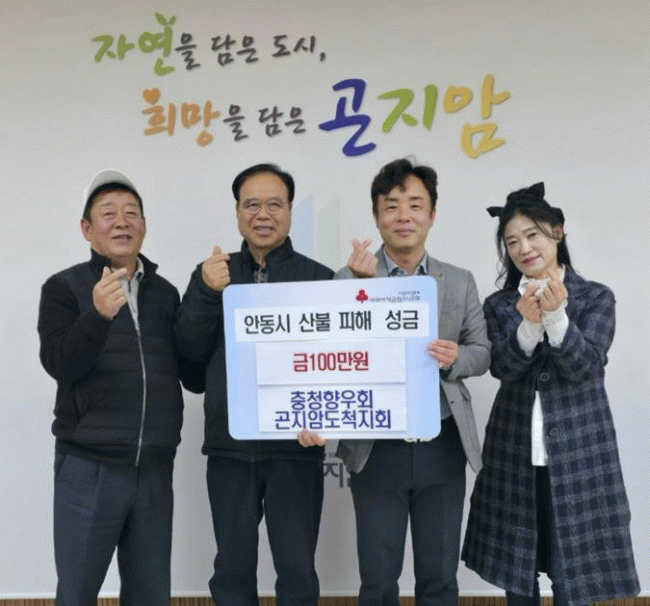 [NWS¹æ¼Û=Çѽ¸ñ ±âÀÚ]ÃæÃ»Çâ¿ìȸ °ïÁö¾ÏµµÃ´Áöȸ´Â Áö³­ 15ÀÏ ±¤Áֽà Àڸŵµ½ÃÀÎ °æ»óºÏµµ ¾Èµ¿½ÃÀÇ »êºÒ ÇÇÇØ º¹±¸¸¦ À§ÇØ ¼º±Ý 100¸¸ ¿øÀ» ±¤Áֽà °ïÁö¾ÏÀ¾¿¡ Àü´ÞÇß´Ù. À̹ø ¼º±ÝÀº °ïÁö¾ÏµµÃ´Áöȸ ÃæÃ»Çâ¿ìȸ ȸ¿øµéÀÇ ÀÚ¹ßÀûÀÎ ¸ð¡¦