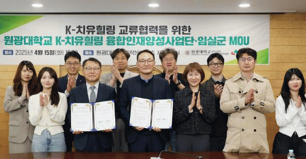 [NWS¹æ¼Û=Çѽ¸ñ ±âÀÚ]ÀӽDZº°ú ¿ø±¤´ëÇб³ K-Ä¡À¯Èú¸µÀ¶ÇÕÀÎÀç¾ç¼º»ç¾÷´ÜÀÌ K-Ä¡À¯Èú¸µÀ» À§ÇÑ ¾÷¹« Çù¾àÀ» Áö³­ 15ÀÏ Ã¼°áÇß´Ù. ¿ø±¤´ë ´ëÇк»ºÎ ȸÀǽǿ¡¼­ ¿­¸° À̹ø Çù¾à½ÄÀº ÀÌÁø°ü ÀÓ½Ç ºÎ±º¼ö¿Í ±èÈïÁÖ K-Ä¡À¯Èú¸µÀ¶ÇÕÀÎÀç¾ç¼º¡¦