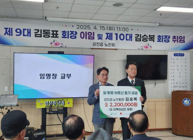 [»çȸ] °­Áø±º ´ëÇѳëÀÎȸ °­ÁøÀ¾ºÐȸ, Á¦9?10´ë ³ëÀÎȸÀå ÀÌ?ÃëÀÓ½Ä ¼º·á |2025. 04.16