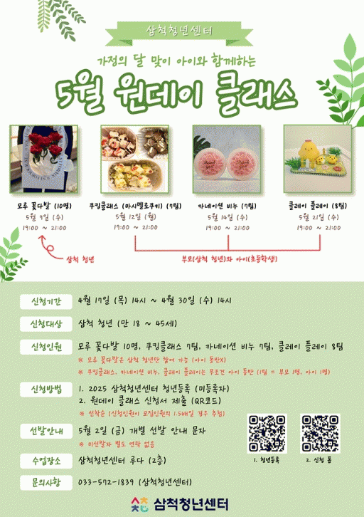 [NWS¹æ¼Û=Çѽ¸ñ ±âÀÚ]»ïôû³â¼¾ÅͰ¡ ¿À´Â 5¿ù, ´Ù¾çÇÑ ºÐ¾ßÀÇ Àü¹®°¡µé°ú ÇÔ²²ÇÏ´Â ¿øµ¥ÀÌ Å¬·¡½º¸¦ ¿î¿µÇϸç Áö¿ª û³âµé¿¡°Ô Á÷Á¢ üÇèÇÏ°í ¹è¿ï ¼ö ÀÖ´Â ±âȸ¸¦ Á¦°øÇÑ´Ù. ƯÈ÷ À̹ø Ŭ·¡½º´Â °¡Á¤ÀÇ ´ÞÀ» ¸Â¾Æ, û³âºÎ¸ð¿Í Àڳడ¡¦