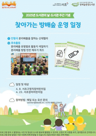 [»çȸ] ¼­Ãʹæ¹è½£È¯°æµµ¼­°ü »ç¼­ ¼±»ý´ÔÀÌ Ã£¾Æ¿Ô¾î¿ä! |2025. 04.16
