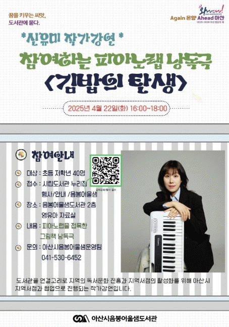[NWS¹æ¼Û=Çѽ¸ñ ±âÀÚ]¾Æ»ê½Ã°¡ ¡®2025~2026 Ãæ³²¡¤¾Æ»ê ¹æ¹®ÀÇ ÇØ¡¯¸¦ ¸ÂÀÌÇÏ¿© 22ÀÏ ¿ÀÈÄ 4½Ã À½ºÀ¾î¿ï»ùµµ¼­°ü¿¡¼­ ÃʵîÇб³ ÀúÇгâÀ» ´ë»óÀ¸·Î ÇÇ¾Æ³ë ¿¬ÁÖ·Î µè´Â ±×¸²Ã¥ Äܼ­Æ® ¡®±è¹äÀÇ Åº»ý¡¯À» ¿î¿µÇÑ´Ù. À̹ø °­¿¬Àº Áö¿ª¼­Á¡¡¦