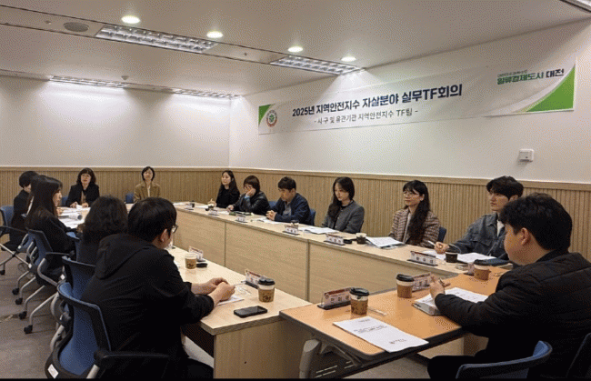 [NWS¹æ¼Û=Çѽ¸ñ ±âÀÚ]´ëÀü±¤¿ª½Ã´Â 15ÀÏ ½Ãû¿¡¼­ ÀÚ»ì ºÐ¾ß Áö¿ª¾ÈÀüÁö¼ö °³¼±À» À§ÇÑ ½Ç¹« TFȸÀǸ¦ °³ÃÖÇß´Ù. À̹ø ȸÀÇ´Â Àü±¹ÀûÀÎ ÀÚ»ì·ü Áõ°¡¿¡ ´ëÀÀÇϰí, 2026³â±îÁöÀÇ Áö¼ö °³¼± Àü·«À» ¸¶·ÃÇϱâ À§ÇÑ ÀÚ¸®´Ù. ȸÀÇ¿¡´Â ´ëÀü¡¦