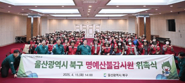 [NWS¹æ¼Û=Çѽ¸ñ ±âÀÚ]¿ï»ê ºÏ±¸´Â 15ÀÏ ±¸Ã» ´ëȸÀǽǿ¡¼­ ¸í¿¹»êºÒ°¨½Ã¿ø À§Ã˽ÄÀ» ¿­¾ú´Ù. ºÏ±¸´Â »ê¸²ÀÎÁ¢Áö¿ª Áö¸®¿¡ ¹àÀº ÅëÀå µî ÁֹΠ132¸íÀ¸·Î ±¸¼ºµÈ ¸í¿¹»êºÒ°¨½Ã¿øÀ» ±¸¼º, »êºÒ ¿¹¹æ¿¡ ÃÑ·ÂÀ» ±â¿ïÀ̱â·Î Çß´Ù. ¸í¿¹»êºÒ°¨¡¦