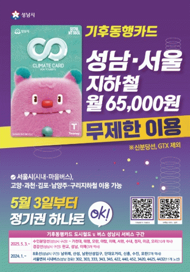 [»çȸ] 5¿ù 3ÀϺÎÅÍ ¿ù 65000¿øÀ¸·Î ¼º³²?¼­¿ï ÁöÇÏö ¹«Á¦ÇÑ ÀÌ¿ë °¡´É |2025. 04.15