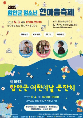 [NWS¹æ¼Û=Çѽ¸ñ ±âÀÚ]ÇԾȱºÀº °¡Á¤ÀÇ ´Þ 5¿ùÀ» ¸Â¾Æ ¿À´Â 5¿ù 3Àϰú 4ÀÏ ¾çÀϰ£ °¡¾ßÀ¾ ÇÔÁÖ°ø¿ø ÀÏ¿ø¿¡¼­ ¡®2025³â ÇԾȱº û¼Ò³â ÇѸ¶À½ÃàÁ¦¡¯¿Í ¡®Á¦103ȸ ¾î¸°À̳¯ Å«ÀÜÄ¡¡¯¸¦ ¿¬ÀÌ¾î °³ÃÖÇÑ´Ù°í ¹àÇû´Ù. ÇÔ¾Èû³âȸÀǼҿ¡¼­ ÁÖ°ü¡¦