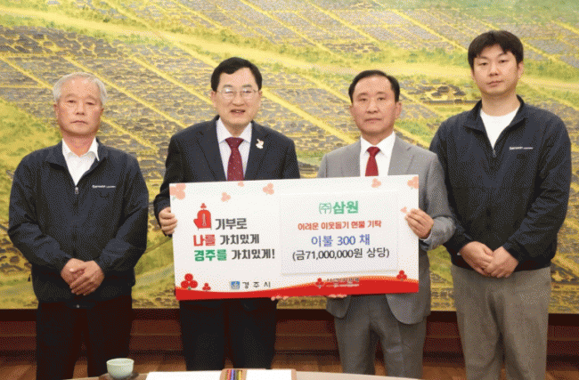 [NWS¹æ¼Û=Çѽ¸ñ ±âÀÚ]2025³â 4¿ù 13ÀÏ, ¢ß»ï¿øÀº °æÁֽà Áö¿ª ³» ¾î·Á¿î ÀÌ¿ôµéÀ» À§ÇØ ÀÌºÒ 300ä(¾à 7,100¸¸¿ø »ó´ç)¸¦ ±âŹÇß´Ù. ¢ß»ï¿øÀº °æÁֽà ¿Üµ¿À¾¿¡ À§Ä¡ÇÑ ºÎÁ÷Æ÷ ¹× ÆçÆ® Á¦Á¶ ¾÷ü·Î, ¾î·Á¿î ÀÌ¿ôÀ» µ½±â À§ÇÑ Á¤±âÀûÀÎ ±â¡¦