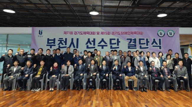 [NWS¹æ¼Û=Çѽ¸ñ ±âÀÚ]±èº´Àü ºÎõ½ÃÀÇȸ ÀÇÀåÀº Áö³­ 14ÀÏ, ºÎõÁ¾ÇտÀå ´ë°­´ç¿¡¼­ ¿­¸° Á¦15ȸ °æ±âµµÀå¾ÖÀÎüÀ°´ëȸ ¹× Á¦71ȸ °æ±âµµÃ¼À°´ëȸ ºÎõ½Ã ¼±¼ö´Ü °á´Ü½Ä¿¡ Âü¼®ÇØ ¼±¼ö´ÜÀ» °Ý·ÁÇß´Ù. ±èº´Àü ÀÇÀåÀº ¡°±×µ¿¾È È기 ¶¡¡¦