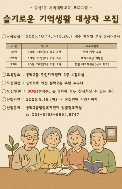 [»çȸ] ¿ëÀÎÆ¯·Ê½Ã µ¿¹é2µ¿, '½½±â·Î¿î ±â¾ï»ýȰ' Ä¡¸Å¿¹¹æ ÇÁ·Î±×·¥ ¼ö°­»ý ¸ðÁý |2025. 09.22
