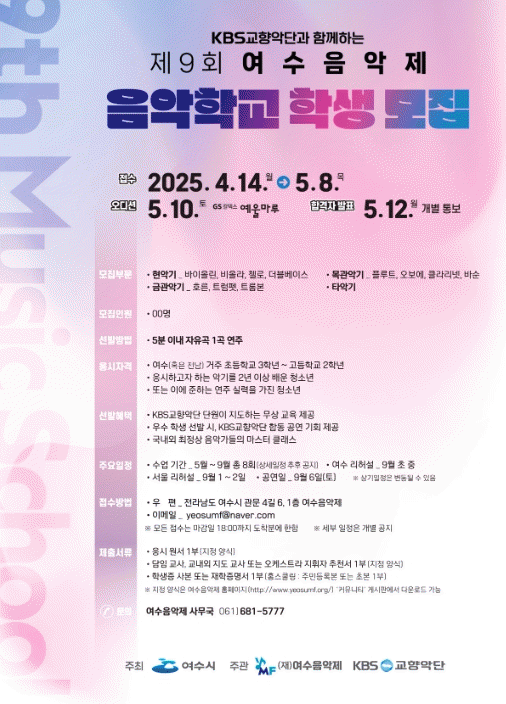 [»çȸ] Á¦9ȸ ¿©¼öÀ½¾ÇÁ¦ À½¾ÇÇб³ Âü°¡ÀÚ ¸ðÁý |2025. 04.15