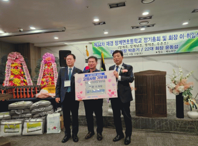 [»çȸ] Àå¼ö±º Àç°æÀå°èÃʵîÇб³ Ãѵ¿Ã¢È¸,°íÇâ»ç¶û±âºÎ±Ý 100¸¸¿ø ±âŹ |2025. 04.15