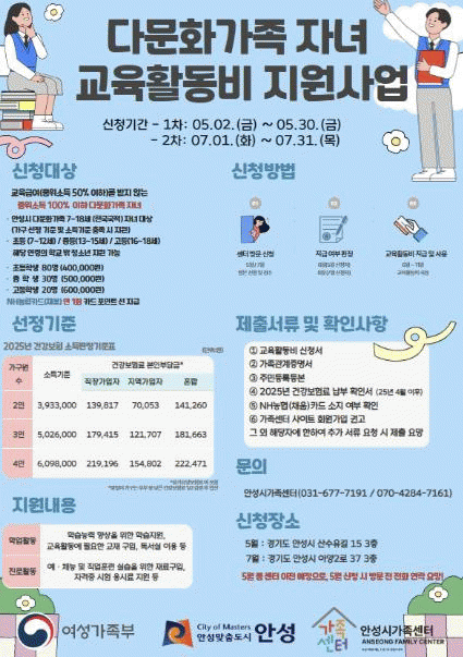 [»çȸ] ¾È¼º½Ã °¡Á·¼¾ÅÍ, '´Ù¹®È­°¡Á· ÀÚ³à ±³À° Ȱµ¿ºñ Áö¿ø»ç¾÷ Âü¿©ÀÚ ¸ðÁý' |2025. 04.15