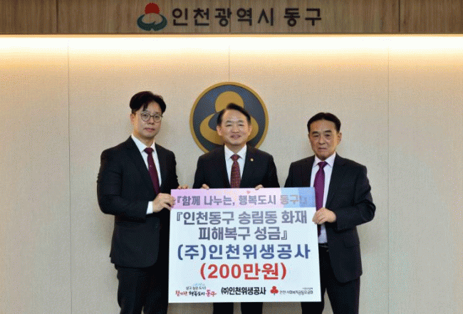 [NWS¹æ¼Û=Çѽ¸ñ ±âÀÚ]ÀÎõ µ¿±¸´Â ¢ßÀÎõÀ§»ý°ø»ç°¡ ¼Û¸²µ¿ È­Àç ÇÇÇØ º¹±¸¸¦ À§ÇØ ¼º±ÝÀ» Áö³­ 10ÀÏ ±âŹÇß´Ù°í ¹àÇû´Ù. ¢ßÀÎõÀ§»ý°ø»ç ±âŹÇÑ ¼º±Ý 200¸¸¿øÀº ÀÎõ»çȸº¹Áö°øµ¿¸ð±Ýȸ¿¡ Àü´ÞµÈ´Ù. ¼º±ÝÀº ÇâÈÄ ¼Û¸²µ¿ È­Àç·Î ÇÇÇØ¡¦