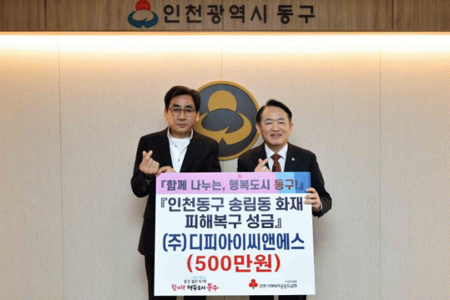 [NWS¹æ¼Û=Çѽ¸ñ ±âÀÚ]ÀÎõ µ¿±¸´Â (ÁÖ)µðÇǾÆÀ̾¾¾Ø¿¡½º°¡ ¼Û¸²µ¿ È­Àç ÇÇÇØ º¹±¸¸¦ À§ÇÑ ¼º±ÝÀ» Áö³­ 10ÀÏ ±âŹÇß´Ù°í ¹àÇû´Ù. ¢ßµðÇǾÆÀ̾¾¾Ø¿¡½º°¡ ±âŹÇÑ ¼º±Ý 500¸¸¿øÀº ÀÎõ»çȸº¹Áö°øµ¿¸ð±Ýȸ¿¡ Àü´ÞµÈ´Ù. ¼º±ÝÀº ÇâÈÄ ¼Û¸²µ¿¡¦