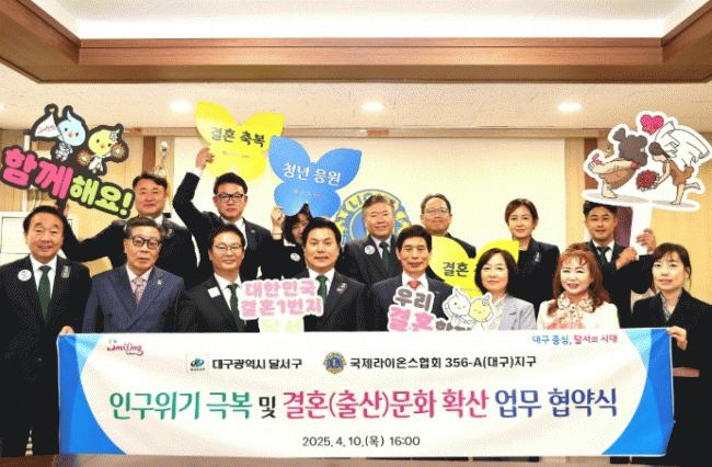 [NWS¹æ¼Û=Çѽ¸ñ ±âÀÚ]´ë±¸ ´Þ¼­±¸°¡ ±¹Á¦¶óÀ̿½ºÇùȸ 356-A(´ë±¸)Áö±¸¿Í ÃÊÀúÃâ»ý Àα¸À§±â ±Øº¹À» À§ÇØ °øµ¿ ´ëÀÀÇϰí,¡®Àß ¸¸³ªº¸¼¼¡¯´º(NEW) »õ¸¶À»¿îµ¿(°áÈ¥¹®È­) È®»ê µîÀ» À§ÇÑ ¾÷¹« Çù¾àÀ» ü°áÇß´Ù. À̹ø Çù¾àÀº ±Þ°ÝÇÑ ÀΡ¦
