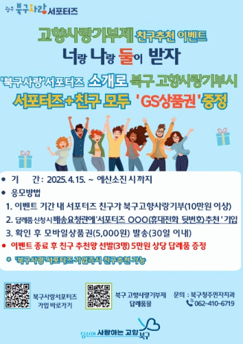 [»çȸ] ±¤ÁÖ±¤¿ª½Ã ºÏ±¸, °íÇâ»ç¶û±âºÎÁ¦ Ä£±¸ ÃßõÇÏ°í ¼±¹° ¹ÞÀ¸¼¼¿ä! |2025. 04.15