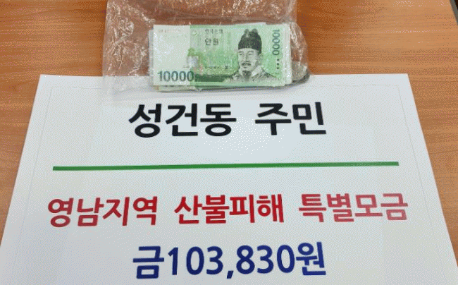 [NWS¹æ¼Û=Çѽ¸ñ ±âÀÚ]¡°µû¶æÇÔÀ» ³ª´©´Â ºÒ¾¾¸¦ ÀÌ¿ôµé¿¡°Ô º¸ÅÂÁÖ°í ½Í½À´Ï´Ù.¡± °æÁֽà ¼º°Çµ¿¿¡ °ÅÁÖÇÏ´Â ÇÑ ¾î¸£½ÅÀÌ ÃÖ±Ù °æºÏ ºÏºÎÁö¿ª »êºÒ·Î »îÀÇ ÅÍÀüÀ» ÀÒÀº ÀÌÀç¹ÎµéÀ» À§ÇØ ÆóÁö¸¦ ¸ð¾Æ ¸¶·ÃÇÑ 10¸¸ 3,830¿øÀ» ±âÅ¹ÇØ Áö¿ª¡¦