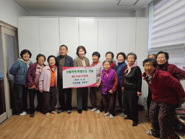 [NWS¹æ¼Û=Çѽ¸ñ ±âÀÚ]¾ç»ê½Ã »óºÏ¸é ÇàÁ¤º¹Áö¼¾ÅÍ´Â Áö³­ 14ÀÏ »óºÏ¸é »ó»ï¸¶À» °æ·Î´ç°ú ÁÖ¹ÎÀÚġȸ dz¹°¹Ý¿¡¼­ Áö³­ »êºÒ·Î ÇÇÇØ¸¦ ÀÔÀº Áö¿ªÁÖ¹ÎÀ» µ½±â À§ÇÑ Æ¯º°¸ð±ÝÀ» Àü´ÞÇß´Ù°í ¹àÇû´Ù. »ó»ï¸¶À» °æ·Î´çÀÇ È¸¿ø 48¸íÀº °øµ¿Ã¼ÀÇ¡¦