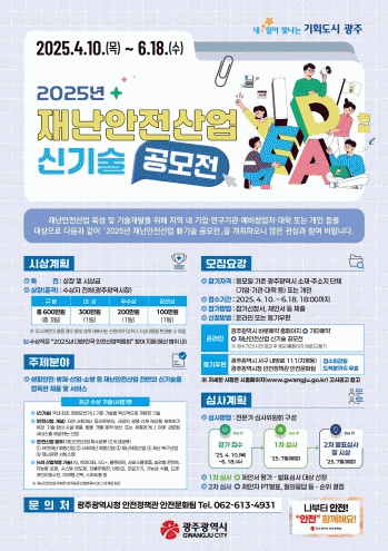 [»çȸ] ±¤ÁÖ±¤¿ª½Ã, ¡®Àç³­¾ÈÀü ½Å±â¼ú °ø¸ðÀü¡¯ Âü°¡±â¾÷ ¸ðÁý |2025. 04.15