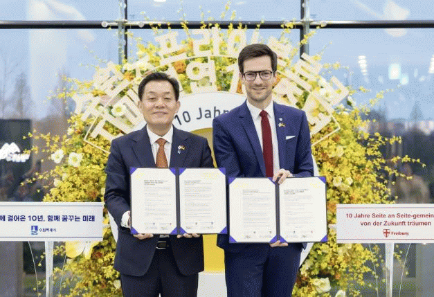 [NWS¹æ¼Û=Çѽ¸ñ ±âÀÚ]ÀڸŰῬ 10ÁÖ³âÀ» ¸ÂÀº ¼ö¿ø½Ã¿Í µ¶ÀÏ ÇÁ¶óÀ̺θ£Å©°¡ Áö¼ÓÀûÀÎ ±³·ù¡¤Çù·ÂÀ¸·Î ¿ìÈ£ °ü°è¸¦ °­È­Çϱâ·Î ¾à¼ÓÇß´Ù. ¸¶¸£Æ¾ È£¸¥(Martin Werner Walter Horn) ÇÁ¶óÀ̺θ£Å©½ÃÀåÀ» ºñ·ÔÇÑ ÇÁ¶óÀ̺θ£Å© ´ëÇ¥´ÜÀÌ ÀÚ¡¦