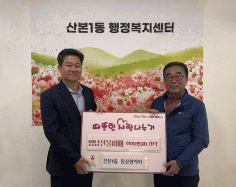 [NWS¹æ¼Û=Çѽ¸ñ ±âÀÚ]±ºÆ÷½Ã »êº»1µ¿ ÅëÀåÇùÀÇȸ´Â Áö³­ 11ÀÏ ¿µ³²Áö¿ª ´ëÇü »êºÒ ÇÇÇØ º¹±¸È°µ¿ Áö¿øÀ» À§ÇÑ ¼º±Ý 100¸¸¿øÀ» ±âºÎÇß´Ù. À̹ø ¼º±ÝÀº ÀÌÀç¹Îµé¿¡°Ô ´õ ÀÌ»ó ÇÇÇØ°¡ ¹ß»ýÇÏÁö ¾Ê°í ÇϷ绡¸® ÀÏ»óÀ¸·Î µ¹¾Æ°¡±æ ¹Ù¶ó´Â ¸¶¡¦