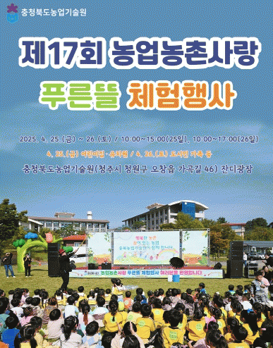 [NWS¹æ¼Û=Çѽ¸ñ ±âÀÚ] ÃæºÏ³ó¾÷±â¼ú¿øÀº ¿À´Â 4¿ù 25ÀϺÎÅÍ 26ÀϱîÁö ÀÌÆ²°£ ûÁֽà ¿ÀâÀ¾ ³ó¾÷±â¼ú¿ø ÀÏ¿ø¿¡¼­ ¾ÆÀ̵é°ú µµ½Ã¹ÎÀÌ ÇÔ²² Áñ±æ ¼ö ÀÖ´Â ¡®Á¦17ȸ ³ó¾÷¡¤³óÃÌ»ç¶û Ǫ¸¥ ¶ã üÇèÇà»ç¡¯¸¦ °³ÃÖÇÑ´Ù°í ¹àÇû´Ù. À̹ø Çà»ç¡¦