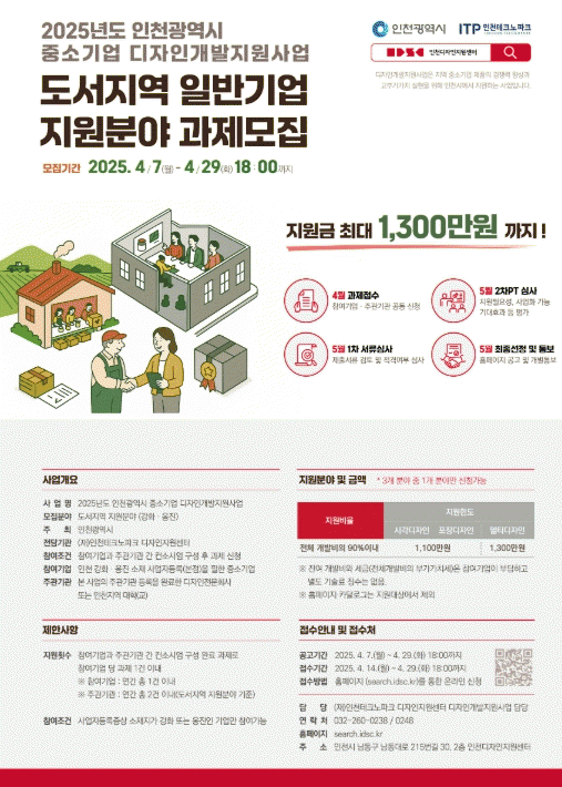 [NWS¹æ¼Û=ÇãÀº¼­ ±âÀÚ]ÀÎõÅ×Å©³ëÆÄÅ©(ÀÎõTP)´Â µµ¼­Áö¿ª(°­È­¡¤¿ËÁø) Áß¼Ò±â¾÷À» ´ë»óÀ¸·Î ÇÏ´Â µðÀÚÀÎ °³¹ßÁö¿ø °úÁ¦¸¦ ¿À´Â 4¿ù 29ÀÏ È­¿äÀϱîÁö ¸ðÁýÇÑ´Ù. ¡®ÀÎõ±¤¿ª½Ã Áß¼Ò±â¾÷ µðÀÚÀÎ °³¹ßÁö¿ø»ç¾÷¡¯ÀÇ ÀÏȯÀ¸·Î, ÀÎõTP´Â Áö³­¡¦