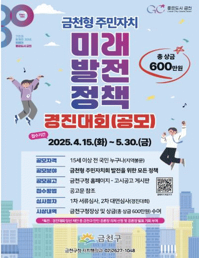 [NWS¹æ¼Û=Çѽ¸ñ ±âÀÚ]±Ýõ±¸´Â ¡®±ÝõÇü ÁÖ¹ÎÀÚÄ¡ Ȱ¼ºÈ­ Á¤Ã¥ ¾ÆÀ̵ð¾î ¹ß±¼¡¯À» À§ÇØ 4¿ù 15ÀÏ(È­)ºÎÅÍ 5¿ù 30ÀÏ(±Ý)±îÁö ¡®±ÝõÇü ÁÖ¹ÎÀÚÄ¡ ¹Ì·¡ ¹ßÀü Á¤Ã¥°ø¸ð¡¯¸¦ ÁøÇàÇÑ´Ù°í ¹àÇû´Ù. °ø¸ð´Â Àü±¹ °¢°è°¢ÃþÀÇ Ã¢ÀÇÀûÀÌ°í ½ÇÇö °¡´É¡¦