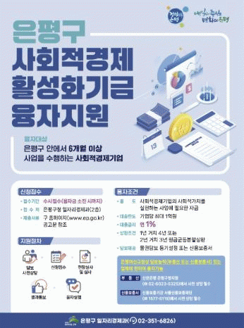 [NWS¹æ¼Û=Çѽ¸ñ ±âÀÚ]¼­¿ï ÀºÆò±¸´Â »çȸÀû°æÁ¦±â¾÷ÀÇ È¿°úÀûÀÎ ¼ºÀå Áö¿øÀ» À§ÇØ ÃÑ 5¾ï ¿ø ±Ô¸ðÀÇ »çȸÀû°æÁ¦È°¼ºÈ­±â±Ý À¶ÀÚ Áö¿øÀ» È®´ëÇÑ´Ù°í ¹àÇû´Ù. ±¸´Â »çȸÀû°æÁ¦±â¾÷ÀÌ Àü³âµµ ¸ÅÃâ¾×ÀÇ 35% ³»¿¡¼­¸¸ À¶ÀÚ¸¦ ½ÅûÇÒ ¼ö ÀÖ¾ú¡¦