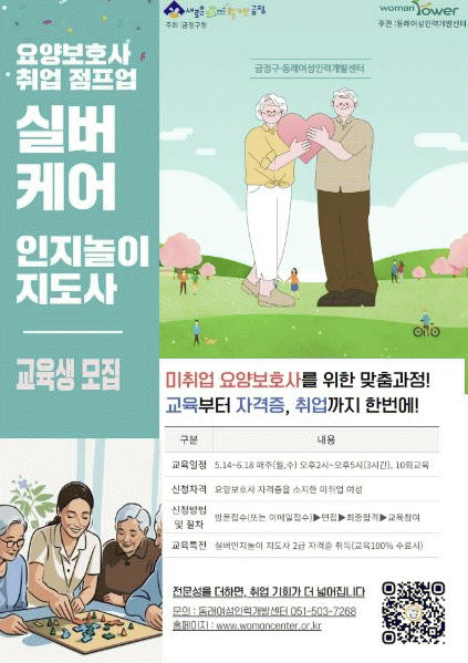 [NWS¹æ¼Û=Çѽ¸ñ ±âÀÚ]ºÎ»ê½Ã ±ÝÁ¤±¸´Â µ¿·¡¿©¼ºÀη°³¹ß¼¾ÅÍ¿Í Çù¾÷ÇÏ¿© °í·ÉÈ­ »çȸ °¡¼ÓÈ­¿¡ µû¸¥ ¿ä¾çº¸È£»ç µîÀÇ Àü¹® Àη¼ö¿ä Áõ°¡ ¹× Ãë¾÷·ü °³¼± µîÀ» À§ÇÏ¿©'½Ç¹öÄɾî ÀÎÁö³îÀÌÁöµµ»ç °úÁ¤'¿î¿µÇÑ´Ù°í ¹àÇû´Ù. '½Ç¹öÄɾî ÀÎÁö¡¦