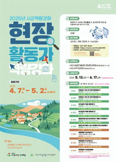 [»çȸ] ¾Æ»ê½Ã¸Ô°Å¸®Àç´Ü, 2025³â ÇöÀåȰµ¿°¡ ¿ª·®°­È­ ±³À°»ý ¸ðÁý |2025. 04.14
