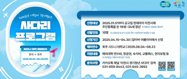 [»çȸ] ÀÌõ½Ã û³â, »õ·Î¿î ¼¼°è·Î! ÇØ¿Ü ´ëÇÐ ¿¬¼ö ÇÁ·Î±×·¥ Âü°¡ÀÚ ¸ðÁý |2025. 04.14