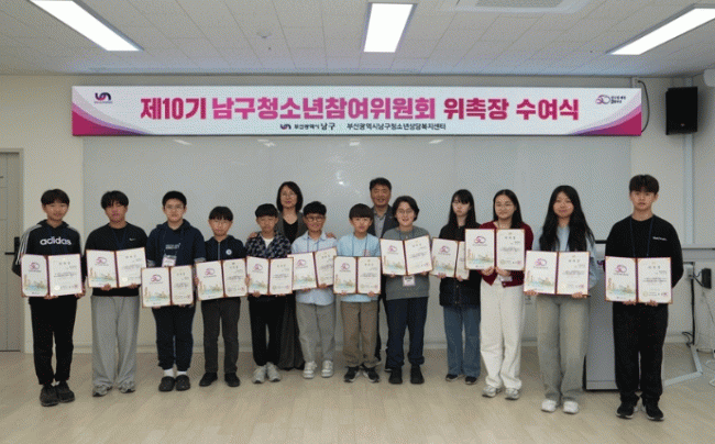 [NWS¹æ¼Û=Çѽ¸ñ ±âÀÚ]ºÎ»ê±¤¿ª½Ã ³²±¸´Â Áö³­ 4¿ù 12ÀÏ ³²±¸Ã» º°°ü¿¡¼­ ¡®2025³â Á¦10±â ³²±¸ û¼Ò³âÂü¿©À§¿øÈ¸(ÀÌÇÏ À§¿øÈ¸¶ó ÇÑ´Ù) À§ÃËÀå ¼ö¿©½Ä¡¯À» °¡Á³´Ù. ¿À¸®¿£Å×À̼Ç, À§ÃËÀå ¼ö¿©, ±â³ä ÃÔ¿µ µîÀ¸·Î ÁøÇàµÈ ¼ö¿©½Ä¿¡¼­ ¿À¡¦