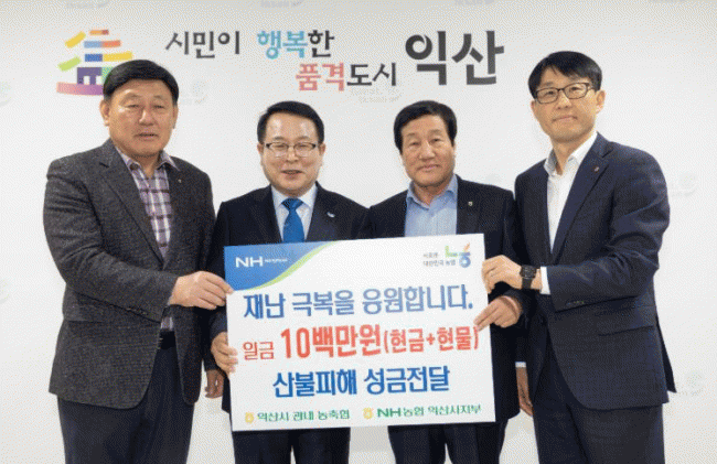 [NWS¹æ¼Û=Çѽ¸ñ ±âÀÚ] ÀÍ»ê½Ã´Â NH³óÇù ÀÍ»ê½ÃÁöºÎ°¡ »êºÒ·Î ÇÇÇØ¸¦ ÀÔÀº Áö¿ª ÁֹεéÀ» µ½±â À§ÇØ ¼º±Ý 700¸¸ ¿ø°ú 300¸¸ ¿ø »ó´çÀÇ ½ÒÀ» ÀÍ»ê½Ã¿¡ ±âŹÇß´Ù°í 14ÀÏ ¹àÇû´Ù. À̳¯ ±âŹµÈ ¼º±ÝÀº »êºÒ ÇÇÇØ·Î Èûµç ½Ã°£À» º¸³»°í Àִ¡¦